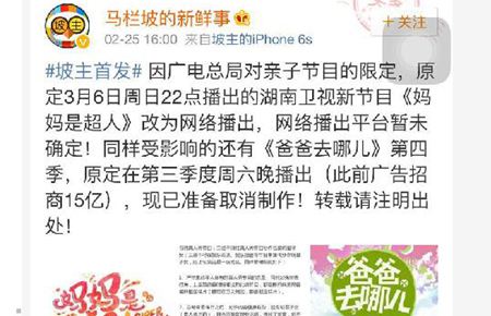此消息爆出之后,新浪娱乐便翻阅国家新闻出版广播电影电视总局官方网站,未有看到在官网发出通知,随后新浪娱乐联系了多家卫视,对方都表示还没有收到文件。不过多档节目已经在做出调整。此前多家宣传公司也都表示亲子类节目的宣传也都停止了。