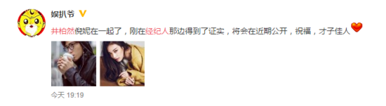 3月6日晚,微博博主“娱扒爷”发文称:“井柏然倪妮在一起了,刚在经纪人那边得到了证实,将会在近期公开,祝福,才子佳人。”同时,微信公众号“包租婆八卦”也称:“双方经纪人都承认了,表示两人是在春节期间好上的,郎才女貌希望得到大家的祝福,两人想低调地开始交往!”而晚上9点全明星探就曝出 倪妮连续两晚入住井柏然公寓,让这段姐弟恋情彻底曝光。