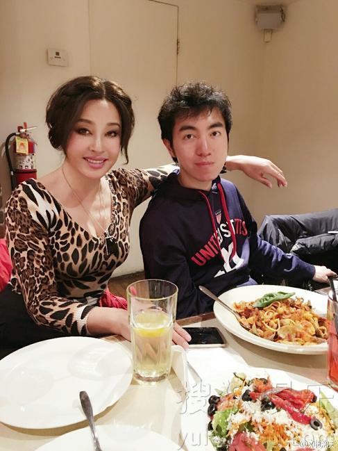 61岁刘晓庆纽约用餐 着豹纹低胸衣性感迷人