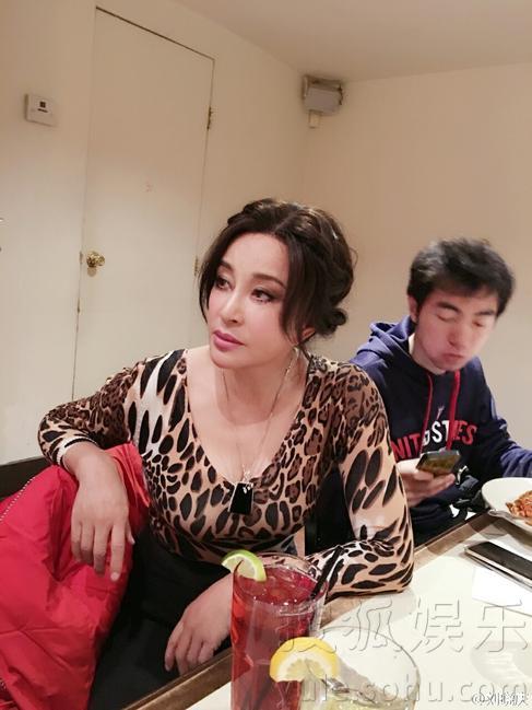 61岁刘晓庆纽约用餐 着豹纹低胸衣性感迷人