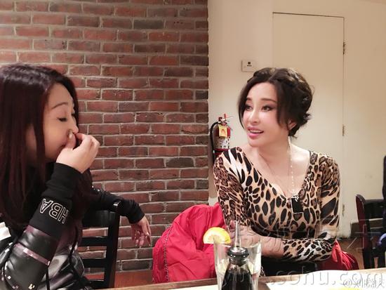 61岁刘晓庆纽约用餐 着豹纹低胸衣性感迷人
