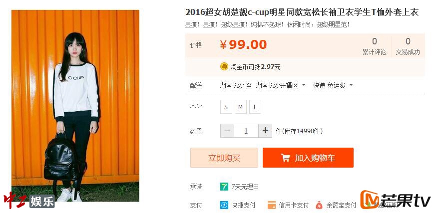 淘宝上线胡楚靓同款服装