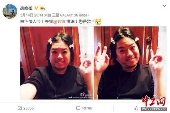 作为“内地民谣鼻祖”,老狼的《同桌的你》、《想把我唱给你听》、《恋恋风尘》等歌曲,曾经贯穿了几代人的青春记忆。而老狼作为最后的补位歌手的加入《我是歌手》,给原本就激烈的局势更添几分紧张。为了应对六位歌手们的挑战,老狼可谓做足了功课,不仅对歌曲进行了精心改编,还力邀好友、知名音乐人高晓松助阵。而高晓松也在微博上幽默的确认了这一消息,发博称“白色情人节!去找老狼排练!他是歌手”,并附上自己的“少女”自拍,引发了网友们的调皮回复:“好好排练,别发自拍!”、“老狼做错了什么,你要这样吓他!”