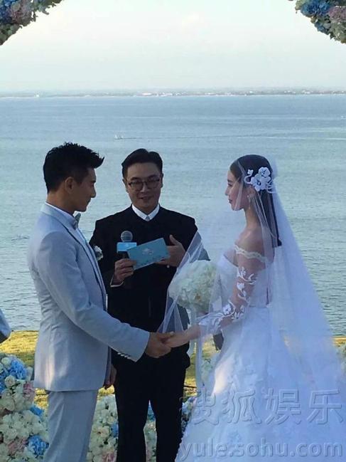 3月20日下午,吴奇隆和刘诗诗在巴厘岛举行婚礼,现场布置花香弥漫、令人陶醉。将近六点时,刘诗诗身披婚纱,在父亲陪同下步入现场。
