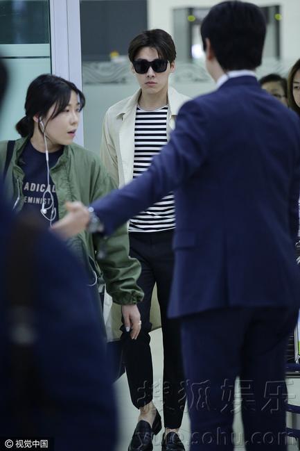 李易峰潮男造型现身机场 大批粉丝接机人气爆棚