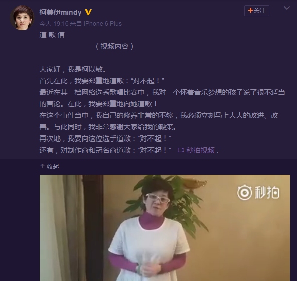 在网上流传的视频中,一名来自成都的超女选手在进行自我介绍时称自己患上重感冒,可能会影响演唱。话音未落,这名选手便遭到柯以敏的打断:“不要唱了,滚吧!”、一句都没唱完便遭到了评委的淘汰。这段视频受到了网友们的激烈讨论与大量转发,相关讨论话题登上热门社交平台讨论榜,网友对评委的行为表示愤怒,觉得作为前辈及专业评委应有基本尊重和具备应有的专业素养”。