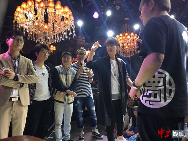 毒药在现场玩起了飞镖,第一接触飞镖的她显得异常兴奋,尝试多次后兴趣大增。现场为了活跃气氛,毒药请上自己的粉丝拼酒,豪爽的她戏称自己“渴了”。帅气的动作引得粉丝尖叫连连。