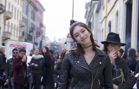 江疏影朋克风亮相时装周 黑色长裙秀美腿