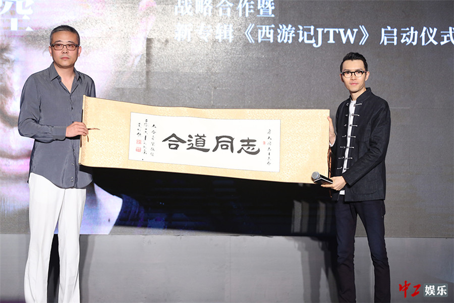 今日,歌手方大同现身北京,宣布正式与太合音乐集团签约,同时,其新专辑《西游记JTW》也正式启动。太合音乐集团总裁钱实穆等高层到场祝贺。