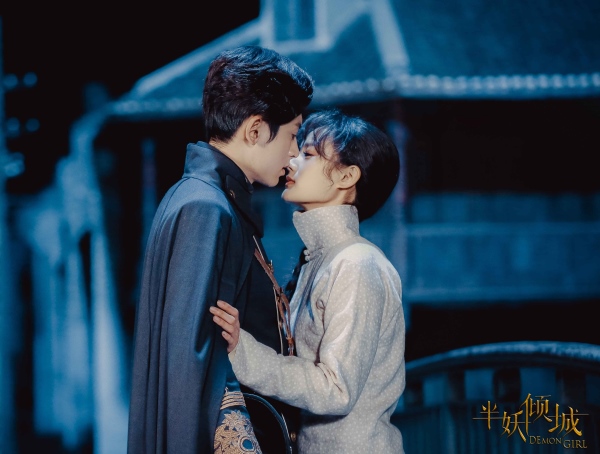 由东阳欢娱影视文化有限公司承制、于正担纲编剧兼艺术总监的《半妖倾城》讲述了民国时期半妖聂倾城与富家公子明夏(张哲瀚饰)之间曲折的虐恋故事。从海报曝光到剧集播出,《半妖倾城》都妖气十足,墨绿色背景、暗沉色服装,诡异画风与以往少女系大相径庭,超现实暗黑漫画风令人眼前一亮。