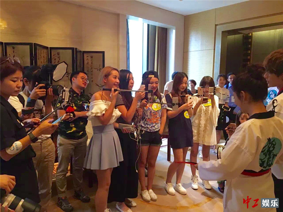 (旋风少女2发布会)美女主播与旋风少女2主演后台互动