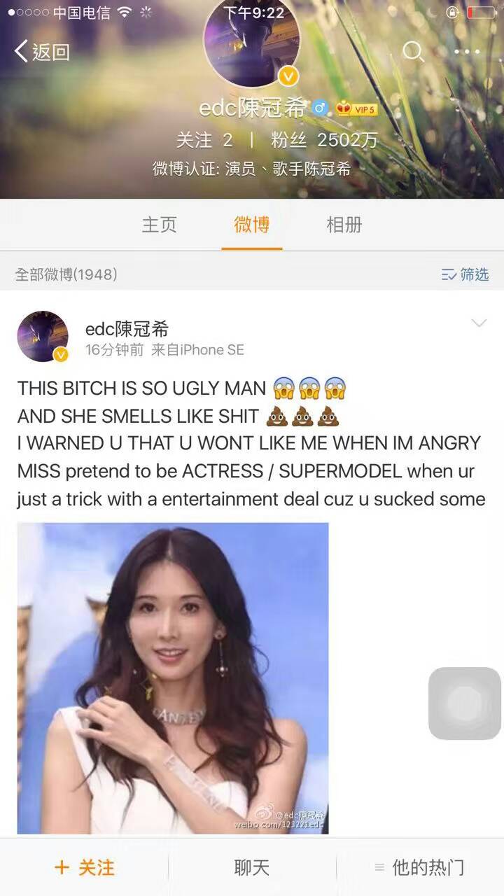 微博网友高度兴奋,纷纷围观此事。在不明真相的情况下,对于陈冠希带有辱骂性质的言论,有不少大V进行了评价。少部分网友认为,不论对方做出何种事情,身为男星也不该在社交媒体上辱骂一位女性。更有网友对陈冠希的言论表示反感称,“这种行为很LOW”。