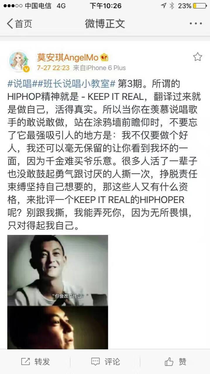令人意外的是,事件发生后不久,有一位超女选手发微博声援陈冠希:“所谓的HIPHOP精神就是-KEEP IT REAL,就是做自己,活得真实。……很多人火了一辈子也没敢鼓起勇气跟讨厌的人撕一次,……别跟我撕,我能弄死你,因为无所畏惧,只对得起我自己。”力挺其“开撕”行为的同时,语气疑似了解部分内情。