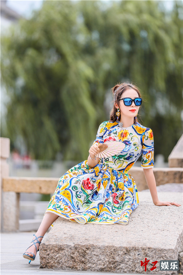 “文艺女侠”江一燕清新亮相 身穿碎花小裙搭配酷炫墨镜