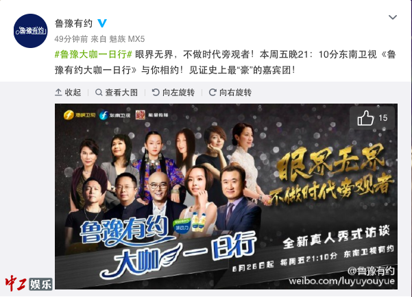 该节目将于8月26日起,每周五晚21:10分于东南卫视首播。