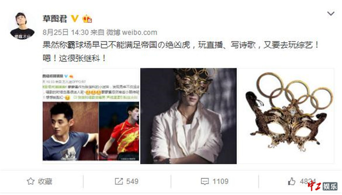 张继科被曝加盟《蒙面歌王》第二季 吊足观众胃口
