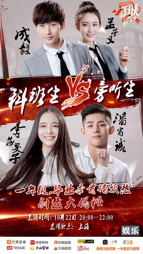 中工娱乐10月23日讯 10月22日晚,湖南卫视第四季度原创综艺《一年级·毕业季》迎来首播,作为已经连续做了三年的纯原创节目,《一年级·毕业季》首播便获得了全国网同时段第一的好成绩。不仅如此,在开播前,节目联动芒果直播、网易新闻、花椒直播、YY直播、一直播、斗鱼、今日头条、乐视乐嗨、唱吧直播间等十大平台,深入节目录制地上海戏剧学院,进行了一场人气学生倒计时直播大作战,结合首期节目主题“团战上海滩”,科班生和旁听生在各个直播平台上展开精彩的直播对决,模仿老师、才艺展示、爆料揭秘,亮点频出,不仅引发线上线下实时互动嗨翻天,与节目播出时间的无缝衔接也为《一年级·毕业季》的首播成功造势。