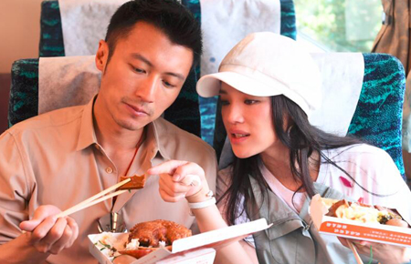 中工娱乐9月6日报道 日前,《十二道锋味3》节目组曝光了一组剧照,照片中舒淇和谢霆锋同乘台湾火车出游,还一同津津有味地品尝了火车便当。