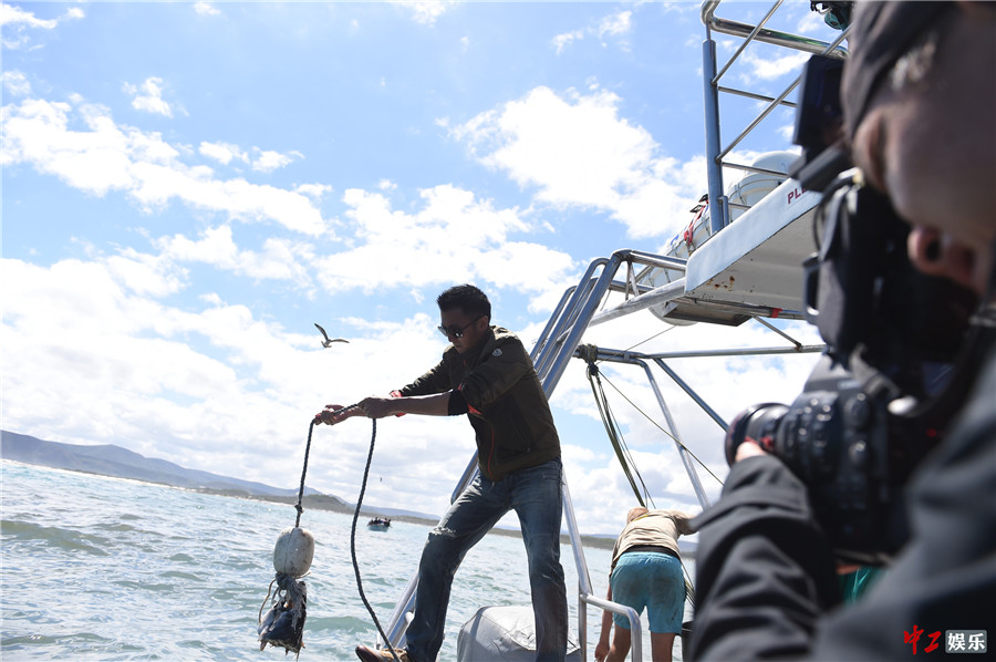 见此情景,颇有经验的船工开始投下鱼头诱饵,谢霆锋杨紫琼则退居二线一脸赞叹地欣赏长达两米的大鲨鱼,更为了观察仔细而冒险俯下身去。然而,恰巧此时,大白鲨发起了脾气来,只见它在两人面前瞬间跃起,猛然一个打挺狠狠撞向船身,巨大的浪潮顿时淋透谢霆锋杨紫琼全身,让两位足足见识了“海洋王之怒”!