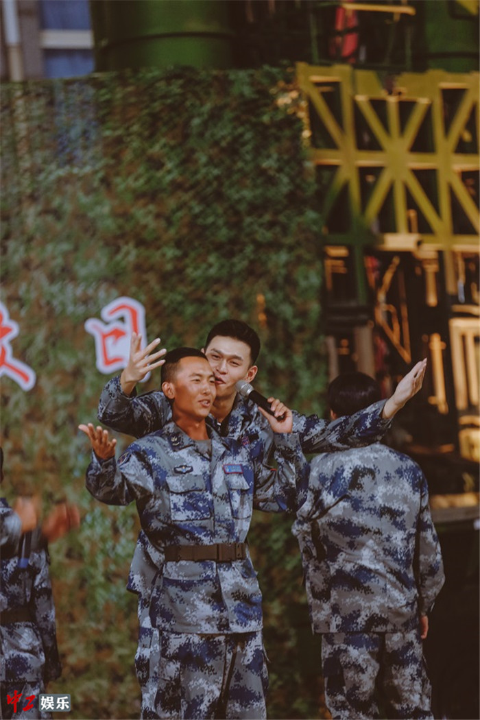 随后的开放日晚会上,新兵们精心准备的节目让军营洋溢欢乐温馨气氛,“英雄营F6”演绎战地救护版“流星雨”,“舞蹈黑洞”杨幂张蓝心加入“黑里俏”组合大秀舞蹈。而与红色前哨雷达站官兵两地连线同享欢乐的环节中,雷达站战士与杨幂连线同唱“爱的供养”的场景更将晚会气氛推向高潮。最后雷达站官兵唱响军歌,喊出“我们面朝大海,你们春暖花开”的忠诚誓言更是书写出满满正能量。