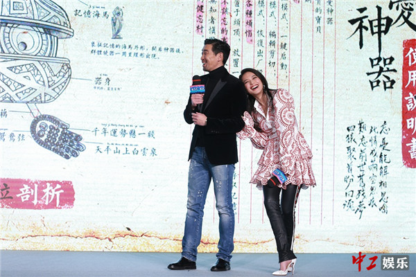 电影《健忘村》发布会秀神秘宝器 舒淇王千源秘密play爆笑不断