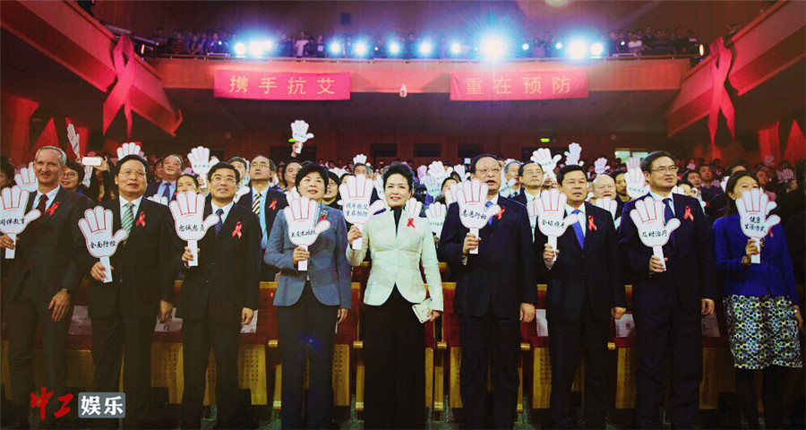 世界卫生组织结核病艾滋病防治亲善大使彭丽媛教授与全场台下举宣传语手板