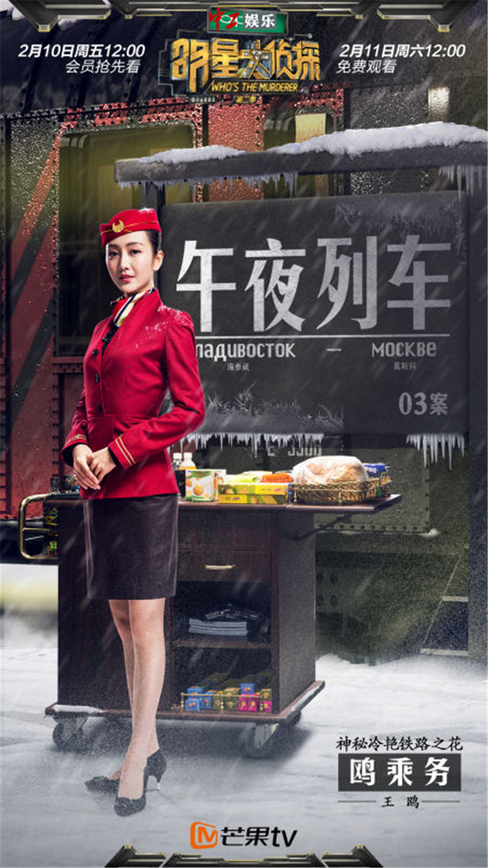 中工娱乐2017年2月10日报道 芒果TV重磅自制明星推理类综艺《明星大侦探》将于今日12:00上线第三案《午夜列车》,本集将从“致敬经典”出发,完美复刻文学宗师阿加莎名作《东方快车谋杀案》,届时,何炅、撒贝宁、王鸥等人将帅气化身列车神秘人,上演悬念迭生的列车复仇大戏。据悉,情急之下,王鸥更是现场自曝“最爱的男人”,深情讲述“虐恋”往事,动情演绎了神秘的铁路之花。