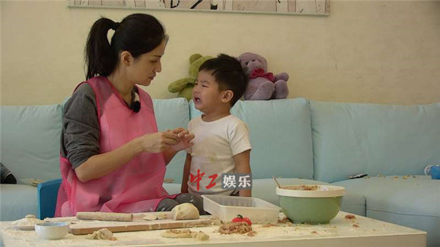 好玩的“面粉大战”也给小鱼儿制造了“捣蛋”机会。包饺子过程中,小鱼儿把肉馅当橡皮泥玩捏起来,眼看温馨和谐的包饺子现场遭到破坏,懂事的哥哥安吉上前制止,引得小鱼儿摔盆弄碗脾气爆发。面对兄弟间的小冲突,胡可自有一套解决办法,她引导孩子把矛盾说出来解决,而不是靠发脾气。好在乐观的兄弟俩马上和好,并且也主动承认错误。