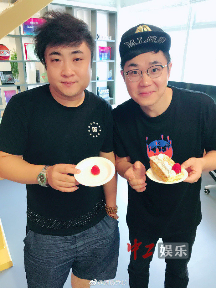 中工娱乐2017年8月4报道 近日,演员乔杉在个人社交平台上发布了一条内容:“来大鹏工作室做客,他说请我吃蛋糕,真讲究!”,配图里大鹏一脸得意的拿着整块蛋糕,而一旁的乔杉则一脸无奈的看着镜头,手里的盘子里只有一颗草莓。大鹏随即也转发评论:“别客气,可劲儿整”,两人的相互调侃足以看出二人之间深厚的友情。