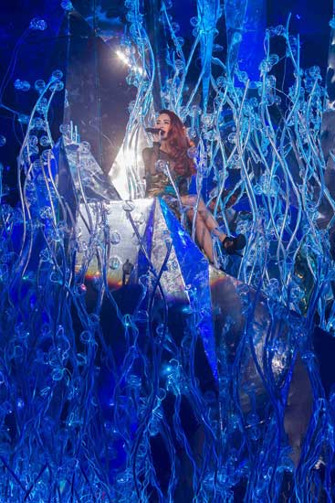 然而,身经百战的Jolin,也分享无论巡演再多场,每次到新的一站,在正式登台前,还是会很紧张:“有时紧张反而变成助力,不过音乐一旦开始,那种感觉就会消失了!”此外,回忆起演唱会上的造型,Jolin提到其中一套以1920年代女伶为主题的造型,因为裙摆是流苏状,尽管穿了安全裤,臀部仍然若隐若现,在试装时一度让她直言:“我不要露屁股!”因此紧急作出调整,Jolin也笑说:“我的造型师很了解什么服装适合我,除了三点不露之外!”