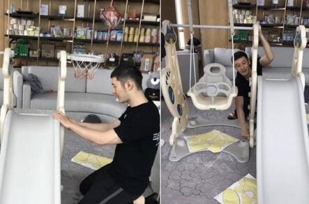Baby豪宅曝光!黄晓明组装滑梯 柜子上囤15罐奶粉