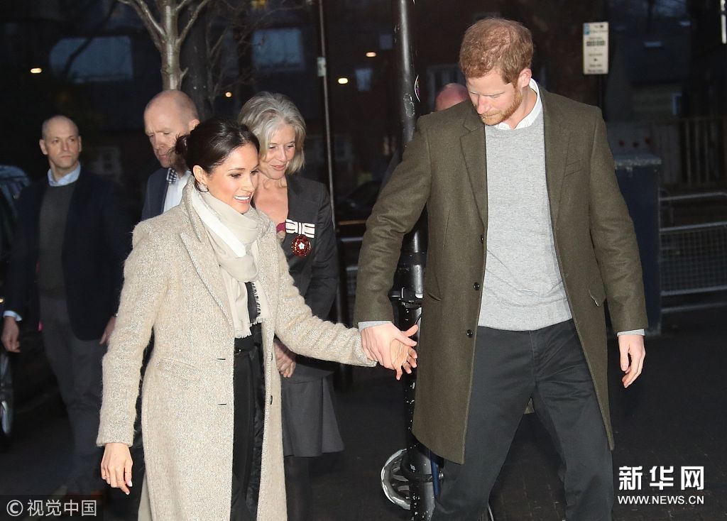 当地时间2018年1月9日,伦敦,英国王室情侣造访广播电台,哈里王子携未婚妻甜蜜牵手伉俪情深。