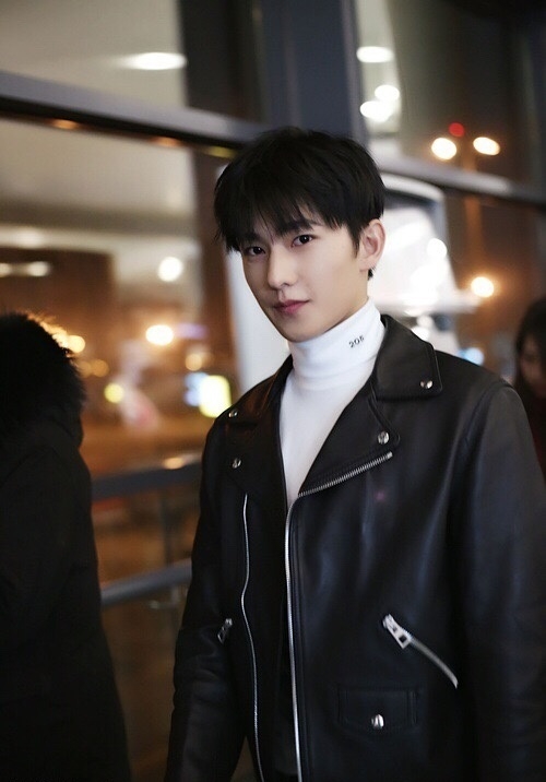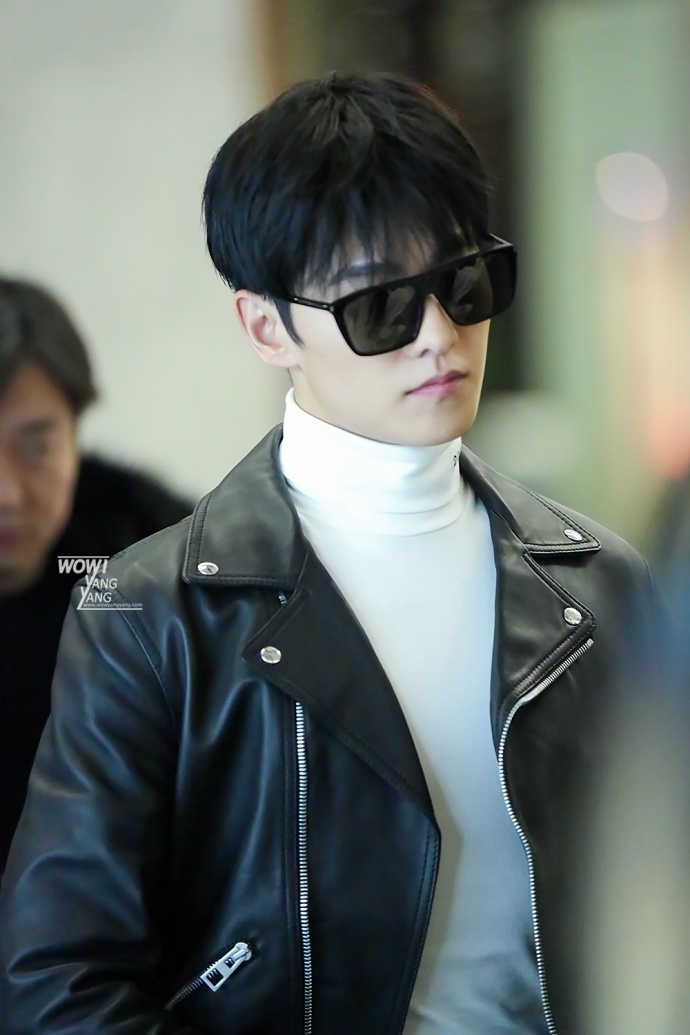 杨洋穿皮衣酷劲十足 脱衣过安检胸肌隐现