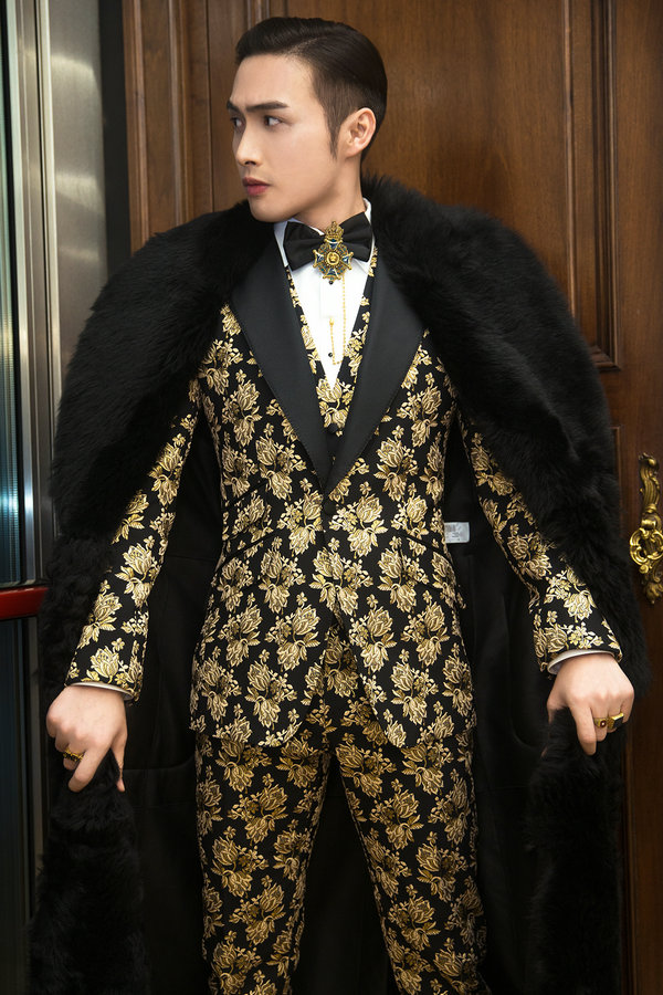 米兰当地时间1月13日,Dolce & Gabbana 2018秋冬系列“King’s Angel”主题时装秀在米兰举行,张彬彬变身模特走上T台献出首秀。他身穿金丝印花西装套装,外搭黑色长款外套,小领结配花型领针更添精致设计感。张彬彬在T台上化身霸道总裁气场全开,展现完美高贵气质。还在秀场后台与设计师Domenico Dolce交流合影。