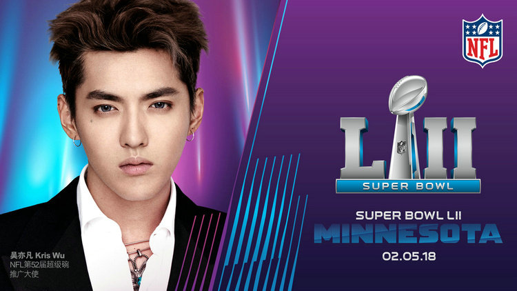 2018年1月25日,受NFL职业橄榄球大联盟和腾讯体育的联合邀请,演员,歌手,音乐制作人吴亦凡将担任“NFL第52届超级碗推广大使”前往现场观赛助威。此外,他还将在比赛前一日登上超级碗官方活动Super Bowl LIVE的舞台献唱,成为首位在Super Bowl LIVE中表演的华人明星。