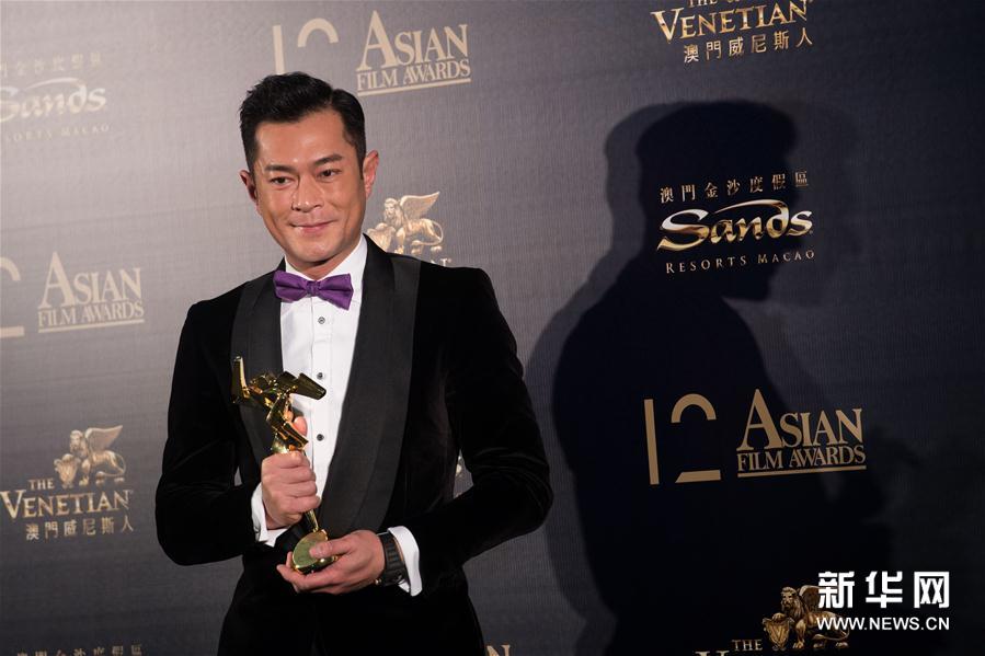 3月17日,古天乐在后台展示奖杯。 3月17日,第十二届亚洲电影大奖在澳门颁发,共颁出17个大奖。影片《芳华》夺得最佳电影,演员古天乐和张艾嘉分获最佳男、女主角。新华社记者 张金加 摄