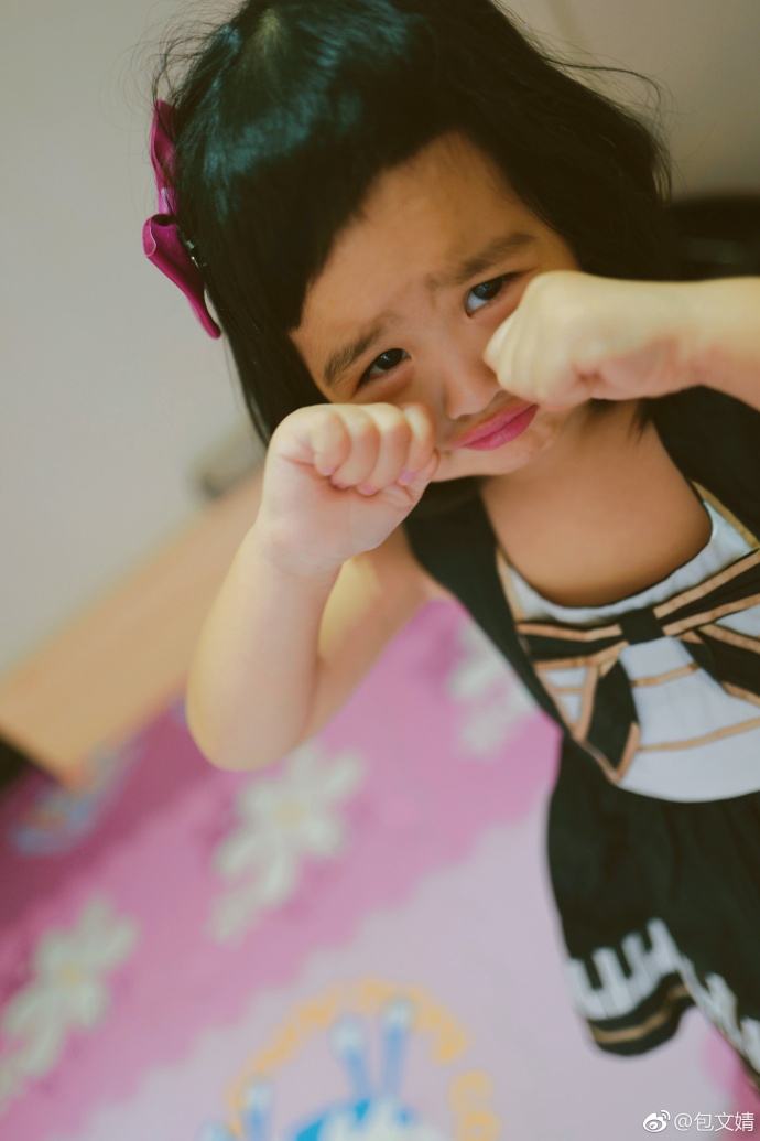 3月28日,包文婧晒出自己为女儿拍摄的照片,配文:“现在看来,妈妈的拍照技术是超人。”照片中,包饺子穿着连衣裙,大笑和委屈的样子都非常可爱。