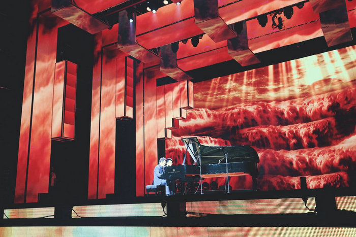 国际著名钢琴大师郎朗先生受邀参与了本次120周年庆祝晚会,并与北大学生郑冲四手联弹,共同演奏《黄河大合唱》第七乐章《保卫黄河》,为北大的120周年献礼。这首乐曲以振奋人心的旋律和刚强有力的节奏形象的展示了一百多年来北大师生英勇无畏,奋发图强,心系民族的伟大精神。该曲的演绎也使晚会现场的气氛第一次达到高潮,获得了北大师生的热烈欢迎和无数掌声。