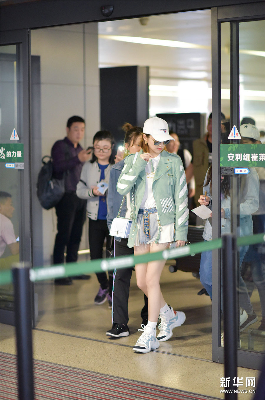 日前,景甜现身上海机场,身穿薄荷绿外套内搭白色T恤与浅蓝牛仔短裤,倍显清爽靓丽,长腿吸睛,超大太阳镜与白色鸭舌帽更显青春活力。一路景甜不时与粉丝互动,并为粉丝暖心签名。