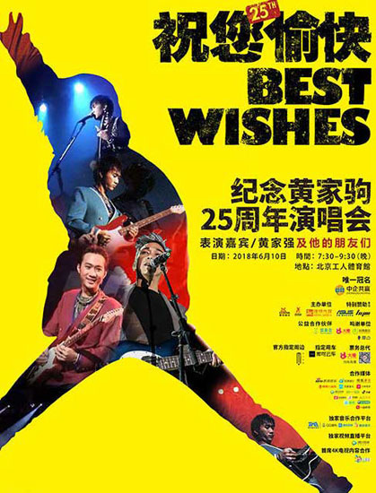 近日,“祝您愉快”纪念黄家驹25周年演唱会火热进行中,正式开票不到24小时就已全席售罄,歌迷纷纷表示想要加席,甚至出现一票难求的盛景。对于演唱会的嘉宾,歌迷的猜测一直不断,由于日前官方发布的群星祝福视频,也让不少人误以为是演唱会参演者。据主办方透露,本次演唱会的嘉宾将聚集来自两岸三地的优秀乐队,并非网传的嘉宾名单。而这些乐队有当年黄家驹的好友,也有后来深受黄家驹影响的音乐人。