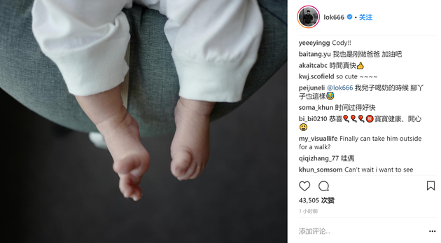 网友也表示六叔余文乐成了晒娃狂魔,纷纷留言:“好可爱!”“小宝贝的小脚丫!”“宝宝健健康康,六叔真是个好爸爸!”“六叔超级爱儿子了”!