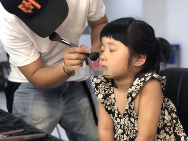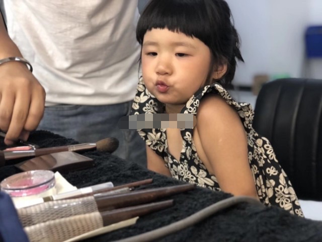 张亮女儿探班爸爸嘟嘴可爱爆表 齐刘海与天天长相一样
