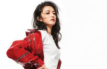 李梦身穿复古优雅的长裙套装,披肩长发随意散落,神秘中带着些许慵懒气息。