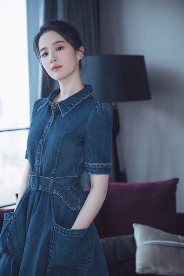 刘亦菲牛仔裙丸子头出席活动“梨涡笑”纯甜清爽
