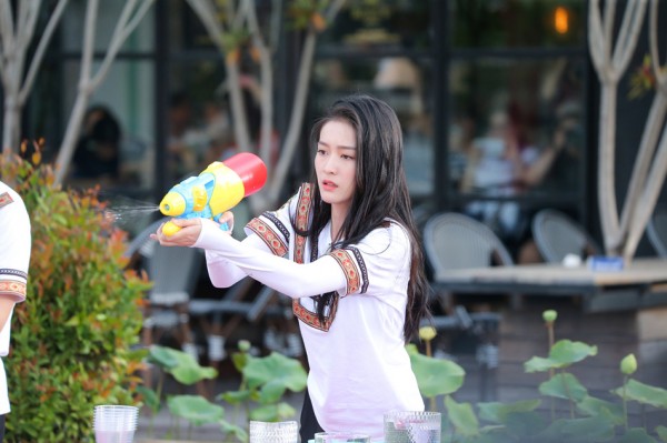 张雪迎手持水枪参加游戏