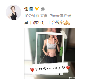 网易娱乐7月10日报道 7月10日,谢楠在自己微博上传一张照片,并配文称:“吴所谓2.0,上台鞠躬!”照片中,谢楠晒出自己小腹,她肚子微鼓,孕味十足。