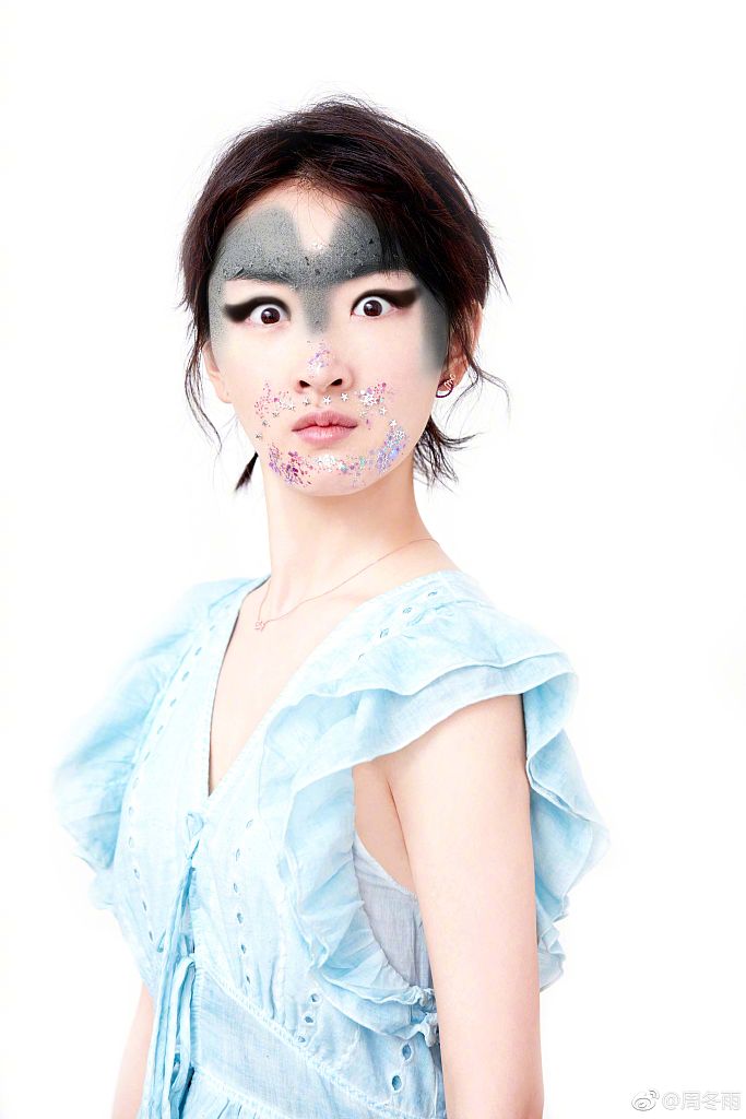 周冬雨搞笑cos好友马思纯在新电影《狄仁杰之四大天王》中水月一角的造型照片曝光。