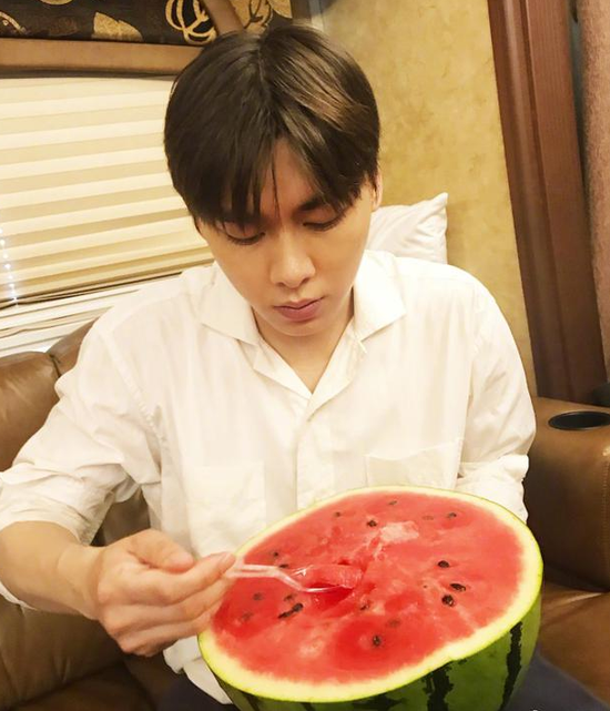 李易峰抱西瓜认真享用 实力cos吃瓜群众