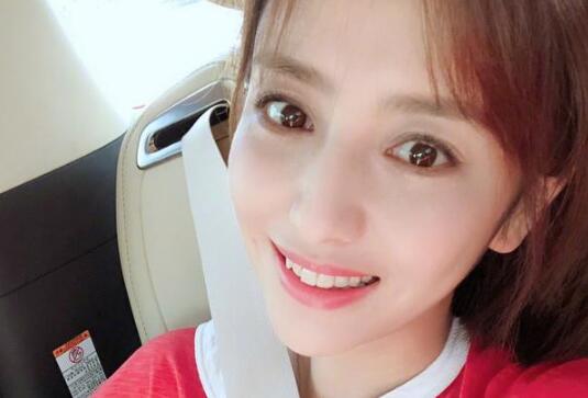 • 佟丽娅穿粉白T恤少女感十足 车内自拍露甜美笑容
