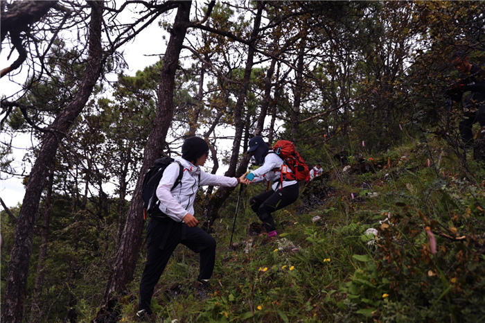 今年的拓展训练地点选在了丽江周边。平均海拔超过3300m、路程将近15km,全程丛林密布、路段湿滑,并伴随着漫长的上坡及下坡,是“行走的力量”历年来最具挑战性的一条。陈坤全程随队,与行者们一同行走近10个小时,作为第一位完成拓展训练的行者返回营地。